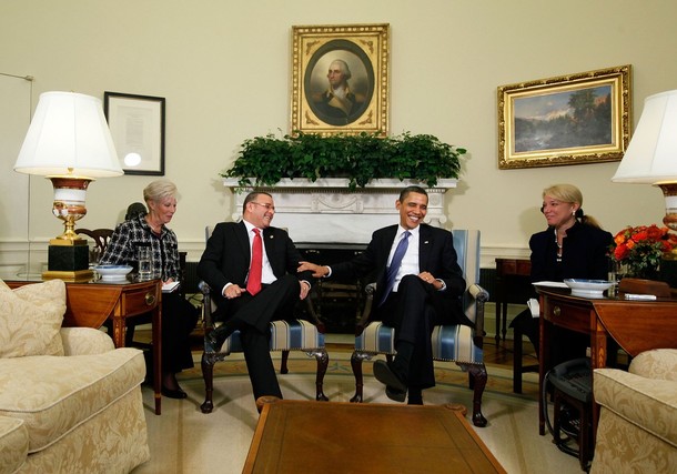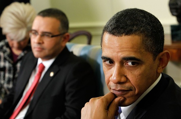 President Obama and President Mauricio Funes of El Salvador during their meeting in the Oval Office, March 8, 2025