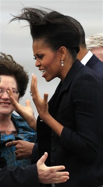 First lady Michelle Obama shakes hands after speaking at the U.S. Chamber of Commerce fourth annual event on hiring military veterans, Nov. 10