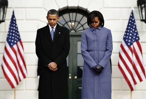 President Barack Obama, First Lady Michelle Obama, and Vice President Joe Biden observe a moment of silence on the 13th anniversary of 9/11.