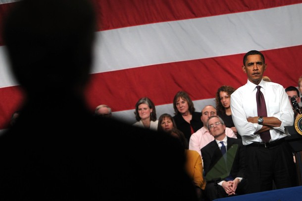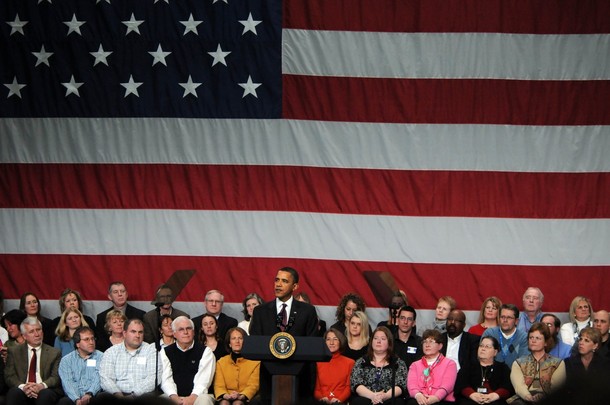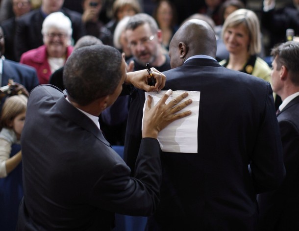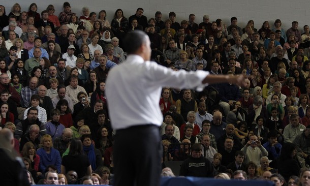 President Obama shakes hands with a supporter after speaking about energy and energy independence at Nashua Community College in New Hampshire
