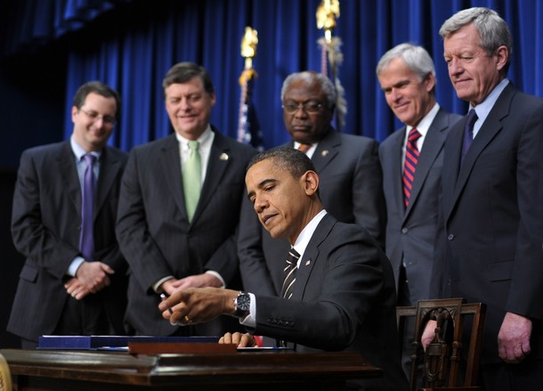President Barack Obama signs the Claims Resolution Act of 2010 in the South Court Auditorium of the Eisenhower Executive Office Building, December 8