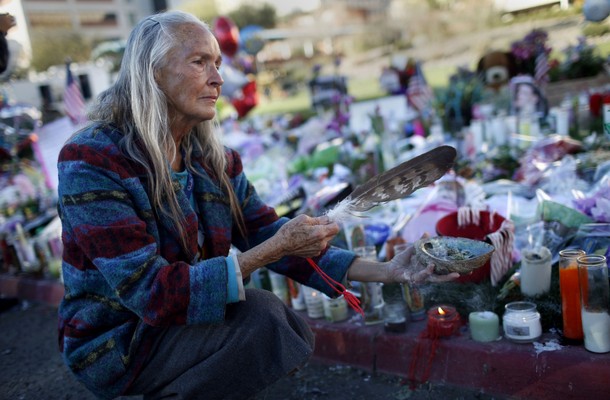 Native American practitioner Carol Locust uses traditional methods to provide healing for the injured at the Tucson University Medical Center
