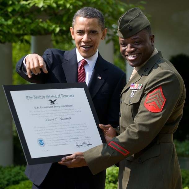 Poignant reaction from 1 of the naturalization candidates greeting Pres Obama prior to being sworn in as Amer citizen pic.twitter.com/LSI2LdkAdH
