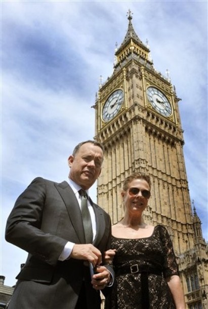 Tom Hanks with his wife Rita Wilson arrive to hear US President Obama’s address in Westminster Hall