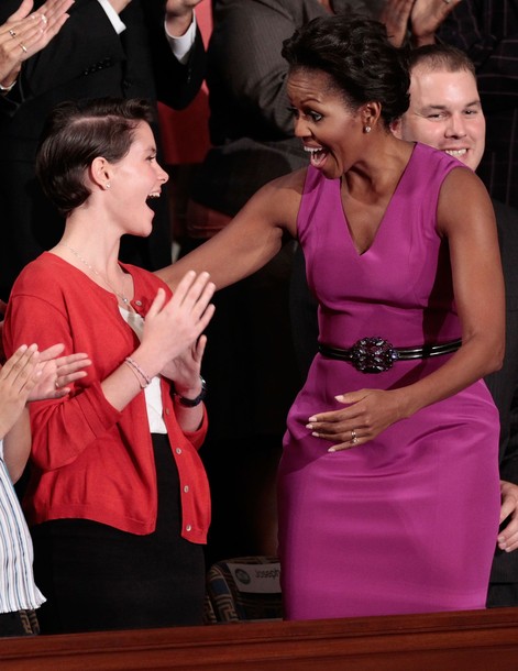 First lady Michelle Obama hugs Tracy Clark before the start of a roundtable discussion at the Minnesota Air National Guard base…. Tracy lost her son, Army Pfc. Ryane G. Clark, while he was serving in Afghanistan in 2010