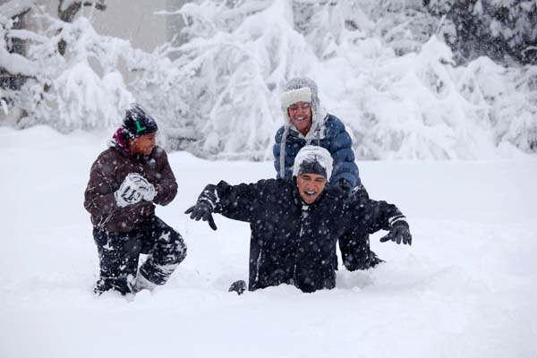 Feb. 6, 2010: “Another snowstorm blanketed Washington for the second time in a few days. Because it was a Saturday, I hung around the White House thinking that the President might venture out in the snow with his daughters. Here they are playing in the Rose Garden in the midst of the storm.” (Official White House Photo by Pete Souza)