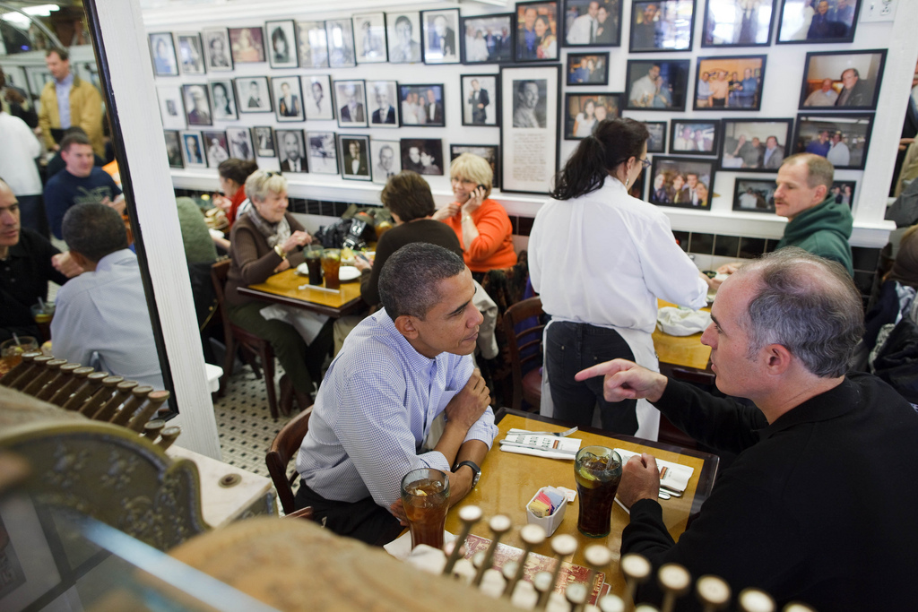 Oct. 30, 2010: “The President has lunch with Sen. Bob Casey at the Famous 4th Street Deli in Philadelphia. I love the woman in the background on the phone, probably alerting her family about her lucky seat.” (Official White House Photo by Pete Souza)