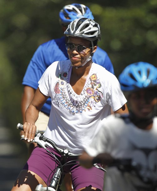 President Barack Obama makes a face as Nancy Loubin takes a picture of him at the seventh annual Wounded Warrior Project’s Soldier Ride.