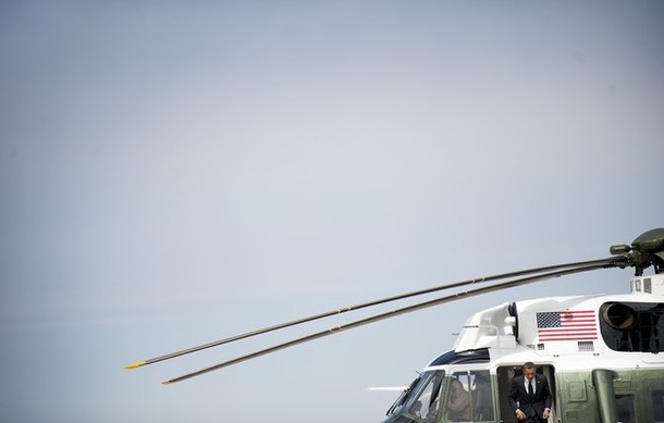 President Obama steps off Marine One before boarding Air Force One at Andrews Air Force Base, March 8