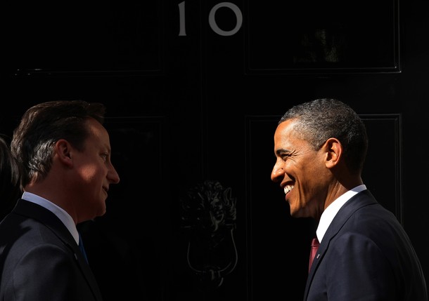 President Obama and British Prime Minister David Cameron visit a classroom at the Globe Academy in London