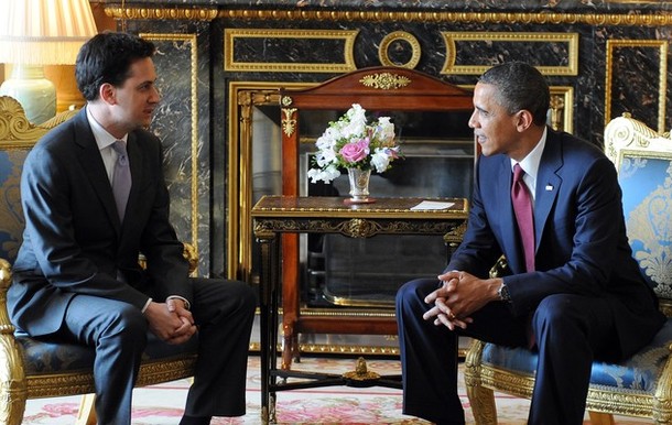 President Obama meets Leader of Britain’s opposition Labour Party Ed Miliband at Buckingham Palace
