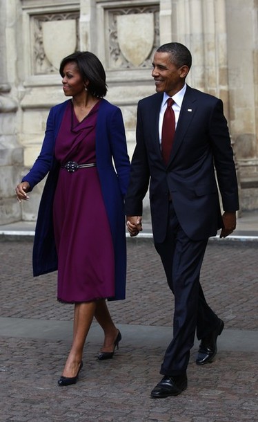 President Obama stands in prayer with first lady Michelle Obama during a wreath laying ceremony at Westminster Abbey