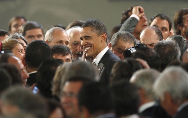 President Obama greets U.S. Army Specialist Four (Ret.) Santiago J. Erevia in the Oval office