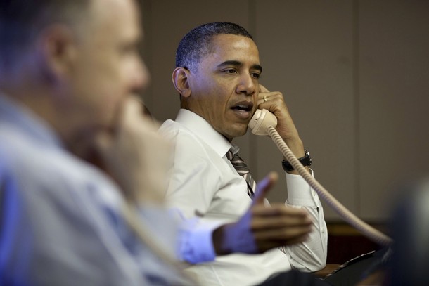 President Obama applauds, from left, Staff Sgt. Melvin Morris, Sgt. 1st Class Jose Rodela, and Spc. Santiago J. Erevia after he awarded them with the Medal of Honor during a ceremony in the East Room of the White House, March 18