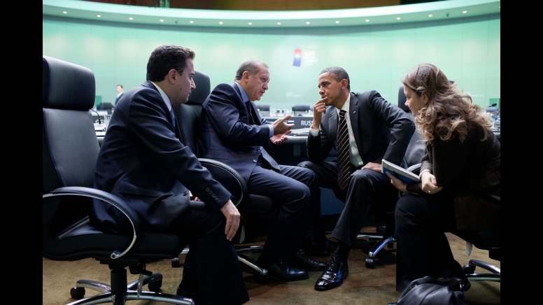 President Barack Obama talks with Turkish Prime Minister Erdogan after the third morning plenary session during the G-20 Summit at the COEX Center in Seoul, South Korea, Nov. 12, 2010. (Official White House Photo by Pete Souza)