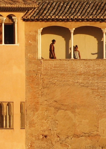 First Lady Michelle Obama and her daughter Sasha look out from the Alhambra Palace during her visit to the southern Spanish town of Granada August 5, 2025