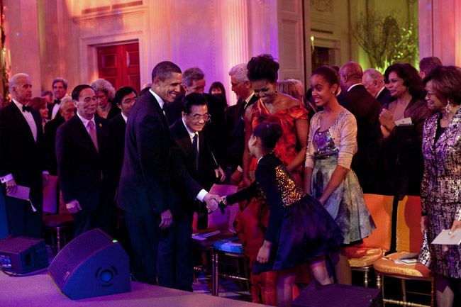 President Barack Obama greets the 2011 Presidential Citizens Medal recipients in the Blue Room of the White House prior to a medal ceremony in the East Room, Oct. 20. (Official White House Photo by Pete Souza)