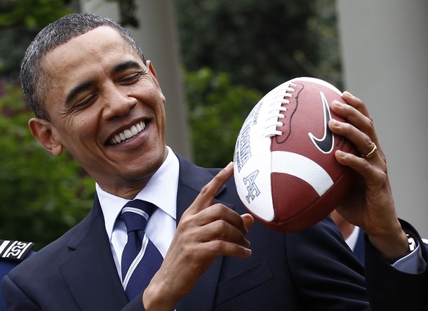 PS You know, if things had gone another way, the President could have played in a Super Bowl …. after all, he once, um, held the Heisman Trophy: