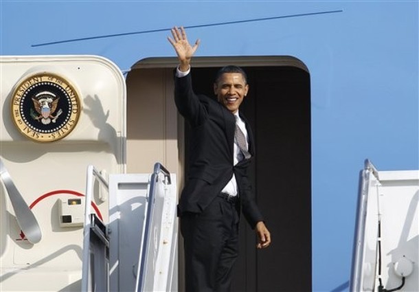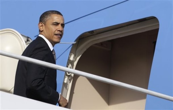 President Barack Obama departs the White House in Washington on February 17. President Obama will meet with technology business executives in the San Francisco area on Feb. 17, and will visit Intel Corp.’s Hillsboro, Oregon, campus on Feb. 18, touring the company’s semiconductor manufacturing facility with Intel Chief Executive Officer Paul Otellini