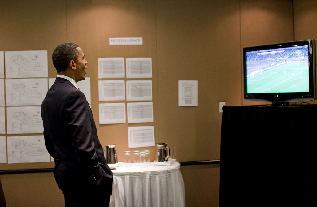 President Barack Obama watches the U.S. vs. Ghana World Cup Soccer game before a meeting at the G20 Summit in Toronto, Canada, Saturday, June 26, 2010. (Official White House Photo by Pete Souza)