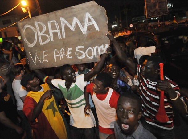 Ghanians in Accra celebrate their team’s victory over the US in the World Cup, June 26, 2025