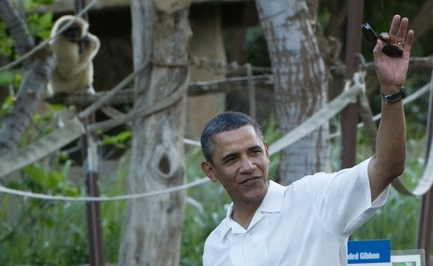 ABC: ….afterwards the Obamas hit the zoo, an annual stop during their vacation. President Obama and daughters Malia and Sasha walked by some primate exhibits that included White-Handed Gibbons and Ruffed Lemurs.