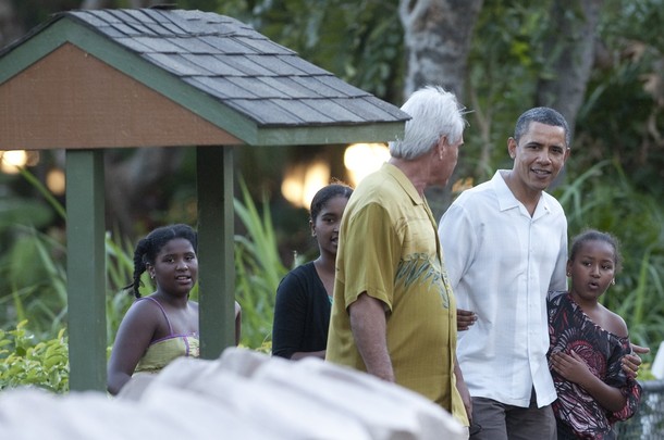 President Barack Obama with family and friends at the Honolulu Zoo, January 3