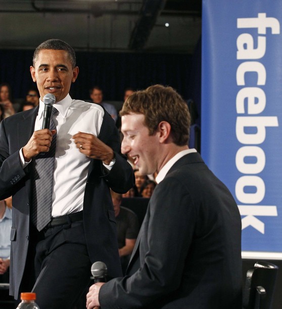 President Barack Obama talks with Facebook founder and CEO Mark Zuckerberg before a dinner with Technology Business Leaders in Woodside, California, Feb. 17, 2011. Also pictured, left to right, are Carol Bartz, Yahoo! President and CEO; Art Levinson, Genentech Chairman and former CEO; Steve Westly, Founder and Managing Partner, The Westly Group; and Eric Schmidt, Executive Chairman and CEO of Google. (Official White House Photo by Pete Souza)