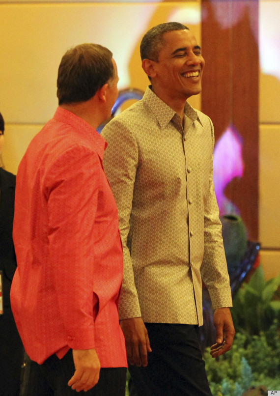 OK, someone has to say it, so it may as well be me. The silliest aspect of international diplomacy is the shirts leaders are made to wear at the APEC summit. For every PBO in “the shirt”, there are ten abominations… like the shirt they wore today. It’s time for a grass roots movement to get APEC to stop making heads of state/government wear those things.