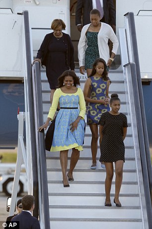 This the link that worked for with search term Michelle Obama daughters arrive in england” http://www.dailymail.co.uk/news/article-3124845/Michelle-Obama-mother-two-daughters-fly-Britain-meet-Prince-Harry-tea-Number-10.html The Malia and Sasha’s first cousin (maternal) joins them on the trip. I believe she is either a sophmore or junior at Princeton. Beautiful family - about 15 pics