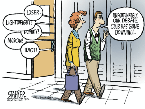 The clown bus arrives tomorrow for the debate.