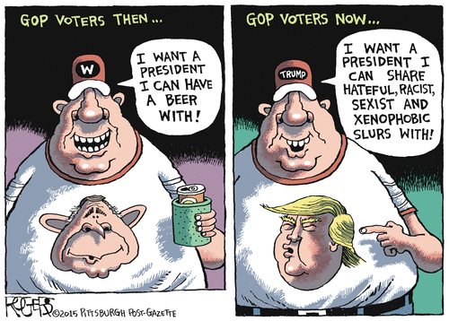 When Trump said that he would build the wall on the Mexican border the first day, you could hear people enjoying sexual pleasure and groaning. It’s becoming scary… for the simple reason that there is only one THE DONALD but thousands if not millions or these deranged, angry, racist people walking all over in this country. It’s a reality show you could label WALKING DANGEROUS.
