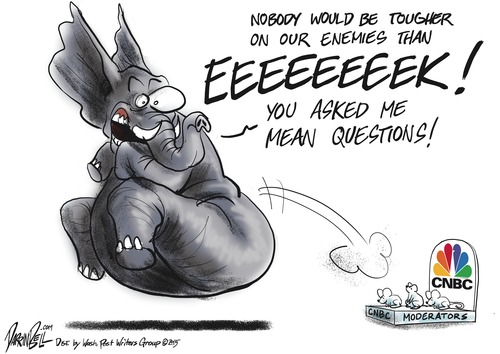 The press is facing an existential threat. With Republicans increasingly unashamed to tell grandiose lies and respond to any press criticism with derogatory insults and whines about media bias as well as blackmail threats to cancel appearances if the questions are too tough, the press must decide how to respond on two fronts. First, it must decide how to present an objective face while acknowledging that both sides do not, in fact, behave equally badly. Second, it must determine whether it will continue to ask the tough questions that need answers regardless of the threats made by the GOP, or whether it will meekly submit to the demands for kid-glove treatment.