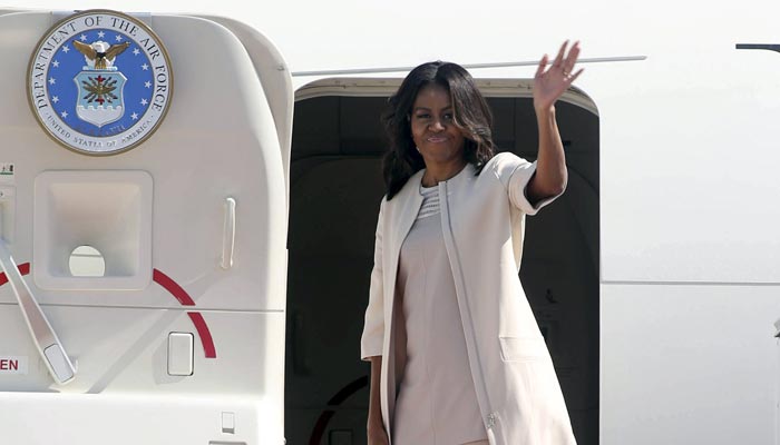 First Lady Michelle Obama left Qatar on Friday almost 48 hours later than scheduled after bad weather forced her to extend her stay in the Gulf state and cancel a planned trip to Jordan. http://www.gulf-times.com/