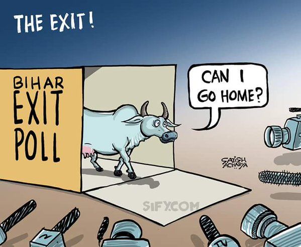 lmao. The nattering nabobs of the teevee media predicted a huge win for our own religious nutbags party of modi today morning just when the counting started for a state election. .Wwithin 3 hours, they had been pied with the opposition (collection of local parties) actually are winning the election in about 140 to 150 out 243 seats - the same margin the teevee idjits were predicting for modiās party just 3 hours back. All the exit “polls” (which are banned during the 5 phases of election) predicted a bjp, (modiās party) win or a very close, itās a toss-up result. They all have eggs on their faces now.