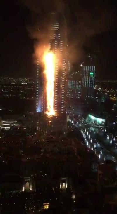 A massive fire has engulfed a 63-storey luxury hotel near Dubai’s New Year’s Eve fireworks display.