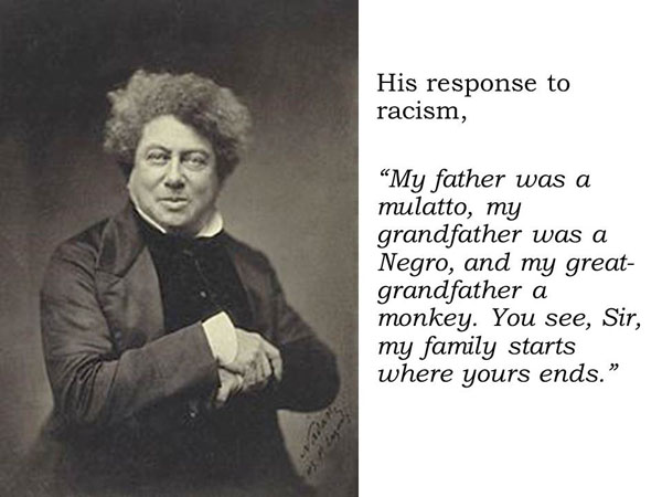 D-ette, you (like LPlains) find the *nicest* bits of information! :) I loved ‘The Count of Monte Cristo’ - bought both the novel and the movie - and never once gave a thought to the author’s background other than he was French. Of course your posting this pic made me take a peek at ‘the Google’. Not sure how authentic it is but this quote made me giggle.
