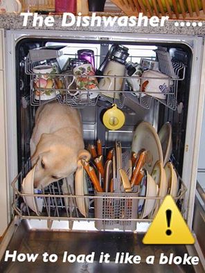 I think it was the Irish comedienne Deirdre Kane who used to say that only a man could fill a dishwasher with a single cup. So true.