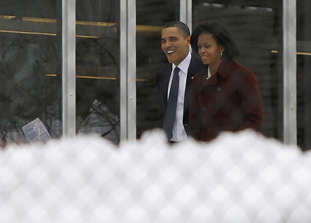 President Barack Obama talks with student Rebecca Hyndman before visiting classrooms at Thomas Jefferson High School for Science and Technology in Alexandria, Va., Sept. 16, 2011. Hyndman, a Senior at Thomas Jefferson, shows the President the patent she received in 2010 for her invention, Under-Floor Storage. (Official White House Photo by Pete Souza)